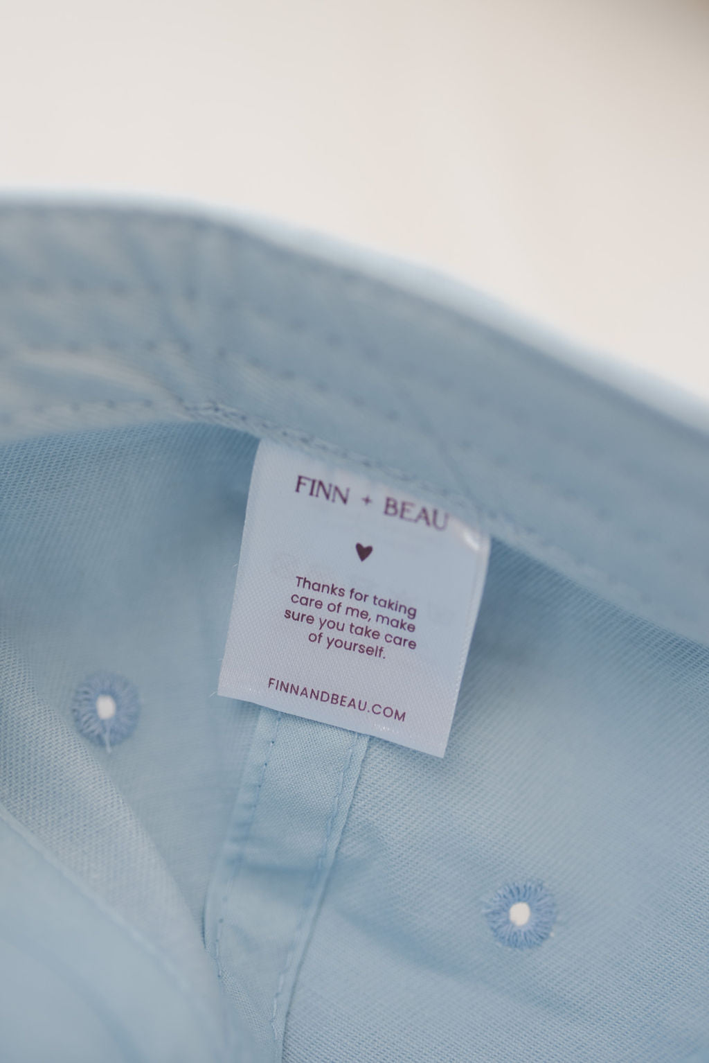 Complete their look with the signature "FINN + BEAU" cap. Made for all our little dreamers with a little love note inside. Perfect for sunshine and smiles.